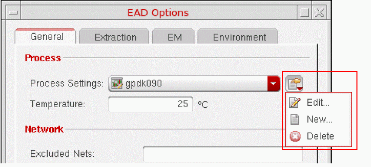 The default extraction corner is defined in the process settings file ( /.cadence/dfII/EAD/1/process/gpdk045.ini |