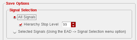 All Signals: This is the default option which specifies that the current data is to be saved for all the signals and instances in the selected design. Along with this, the Hierarchy Stop Level option is also selected and is by default set to