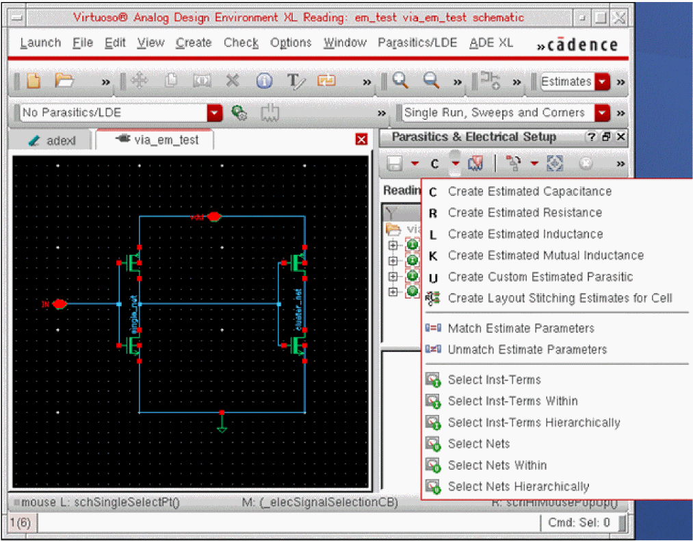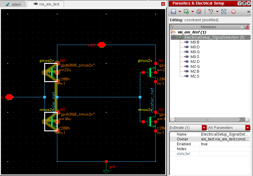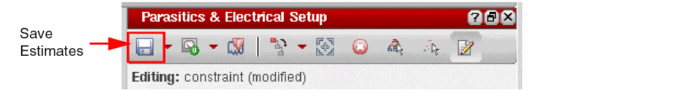 Select Save Estimates on the Parasitics & Electrical Setup toolbar to save the new selection setup.