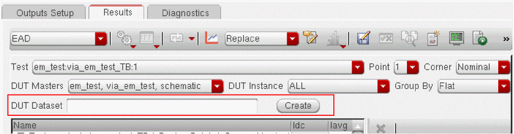 The naming convention of the datasets depends on two factors, the value in the Corners or DUT Instance drop-down lists on the EAD results view and type of data in the simulation results being saved. If you choose to save the data for multiple DUT instances or corners, a separate dataset is created for each corner and DUT instance combination and an incremental number is used for unique identification.