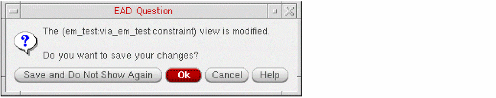 nil. ADE Assembler will save the constraint view and display the following information message in the CIW.INFO (CMGR-5030): "<constraint-view-name>" saved.