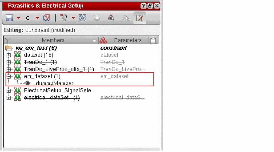 You can also delete datasets from the Parasitics & Electrical Setup assistant. -