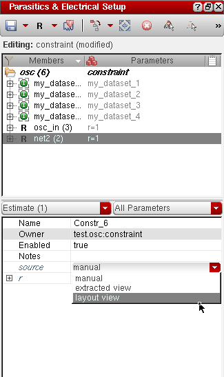 You can now add parasitic estimates from other sources, such as a layout view, in any one of the following ways: