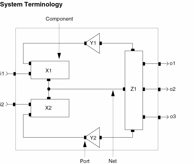 A system is a collection of interconnected components that produces a response when acted upon by a stimulus. A hierarchical system is a system in which the components are also systems. A leaf component is a component that has no subcomponents. Each leaf component connects to zero or more nets. Each net connects to a signal which can traverse multiple levels of the hierarchy. The behavior of each component is defined in terms of the values of the nets to which it connects.