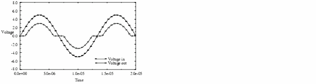 The following graph shows the response of the amplifier to a sinusoidal source.