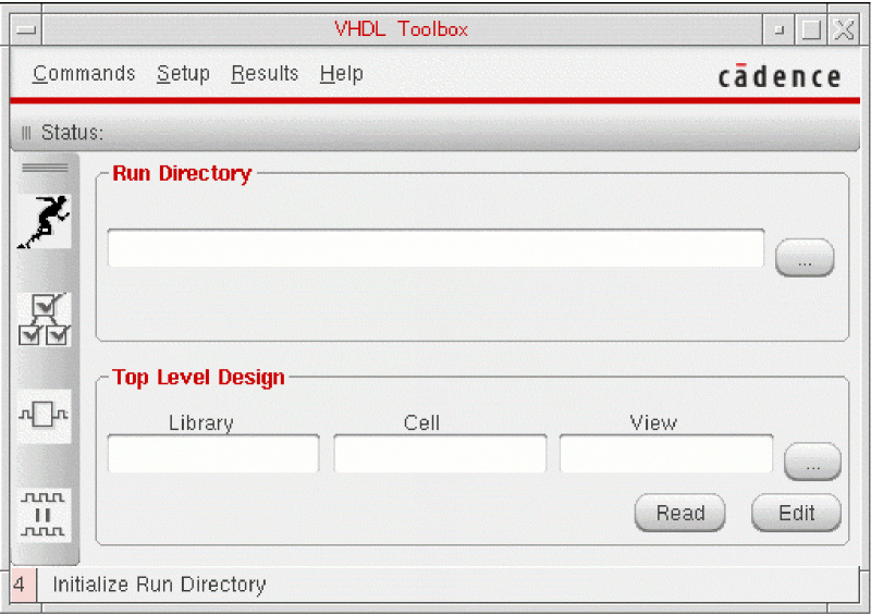 If you do not have Virtuoso® Design Environment running (no CIW is displayed), you can run VHDL In in standalone mode.