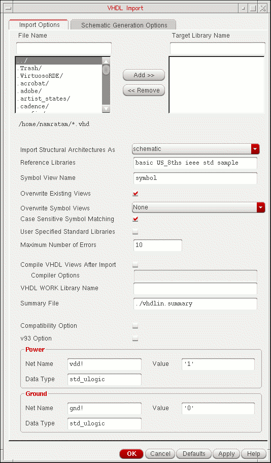 cds.lib, VHDL In fails to create a schematic. It creates a behavioral view instead of a schematic.Starting VHDL In in Standalone Mode