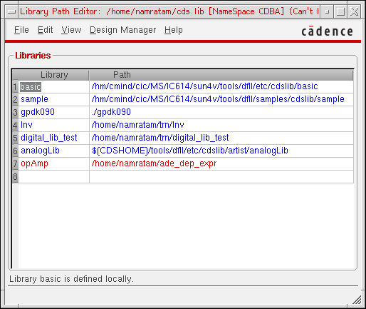 basic,sample,US_8ths,std, andieee) to thecds.libfile. - Specify new libraries for designs you create.