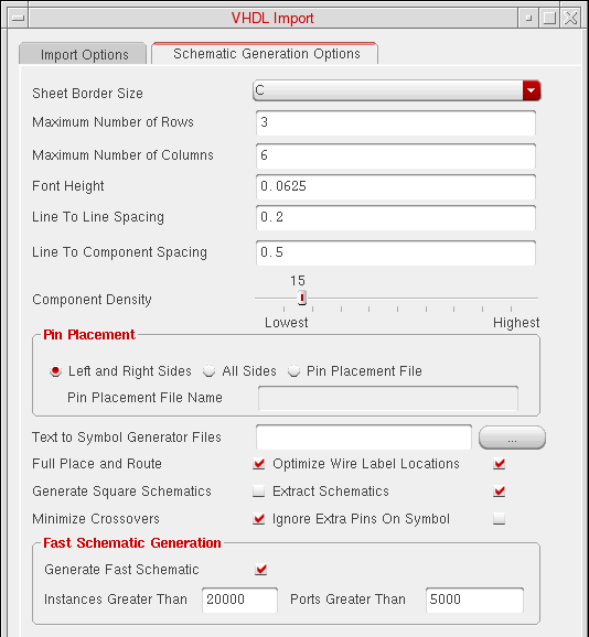 - On the VHDL Import form, click the Schematic Generation Options tab.