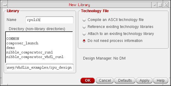 Because you specified a target library name in the (rpulib), a dialog box opens, asking you if you want to create the new library. When you click Yes in the dialog box, the New Library form opens.