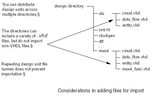 .vhdfiles in each directory. If you are using other tools or techniques, some of your directories might include C model files and Verilog files.