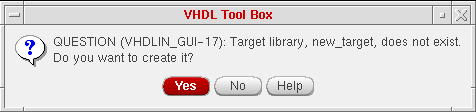 If you enter a target library name that does not exist in the Target Library Name field, the following dialog box opens. It asks you if you want to create the library, or if you mistyped the library name. Clicking OK opens the Create Library form, which asks you for the location of the library.