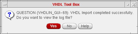 When the import process finishes successfully, the following dialog box opens. If you click OK, the VHDL Tool Box status