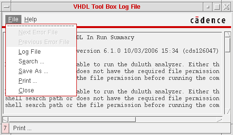 Although the examples in this user guide have you only look at and close the VHDL Tool Box status window, the window has a set of commands that can help you debug problems or understand how your design is imported.
