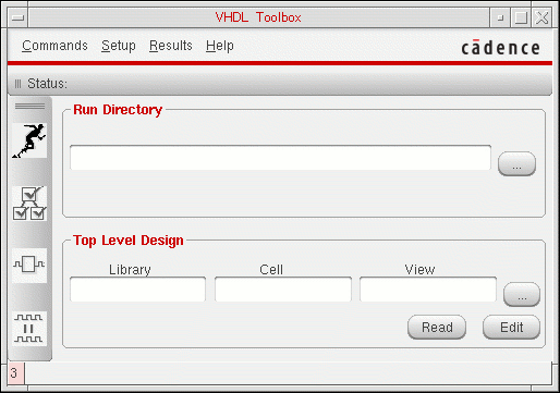 VHDL Toolbox is an integrated netlisting and simulation environment that you can use to generate structural VHDL (IEEE93/87) text netlists from hierarchical schematics and run simulations in the Cadence NC environment.