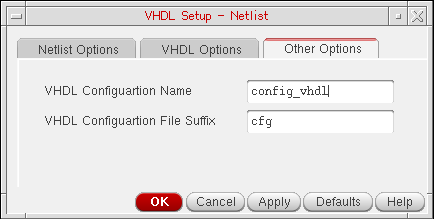 The following figure shows the Other Options tab on the VHDL Setup - Netlist form: