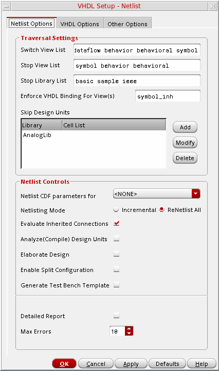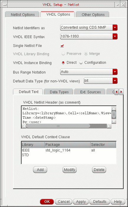 - Configuring the VHDL Netlister