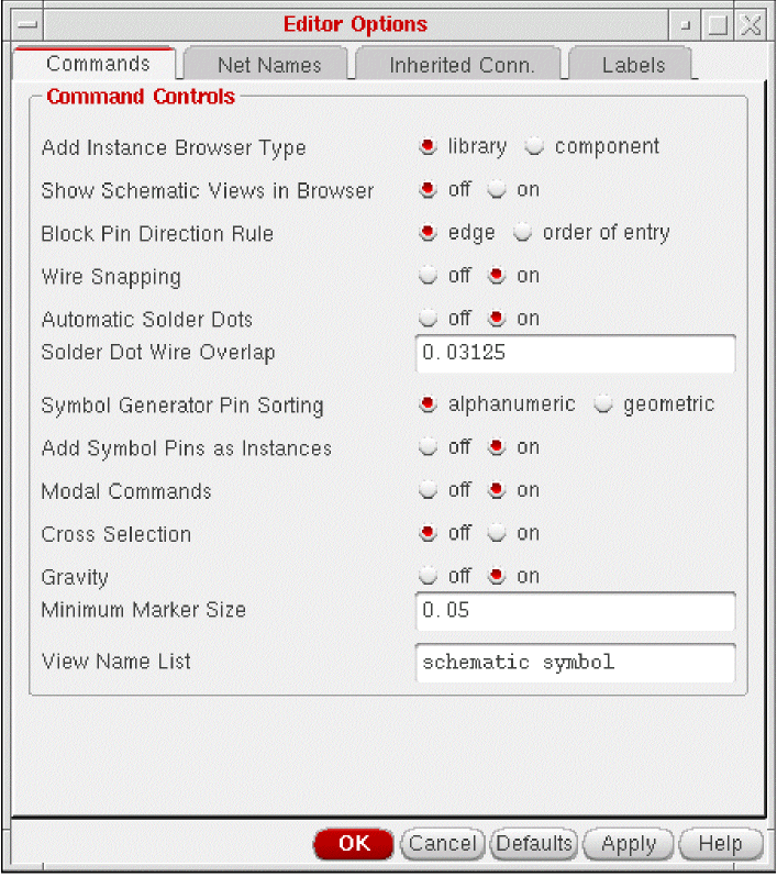 From the Visrtuoso Schematic Editor, choose Options – Editor.