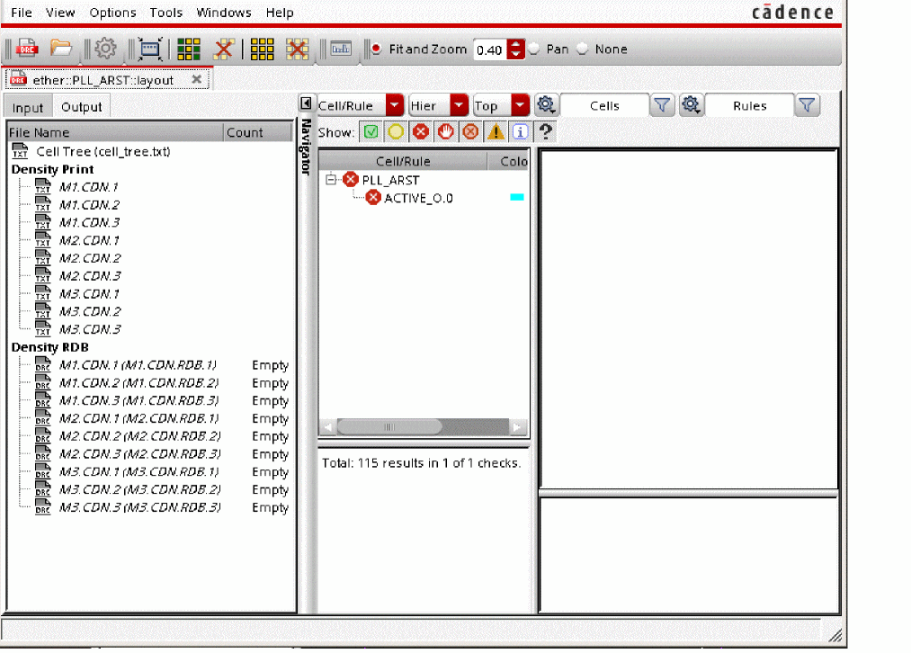 At this point, the PVS DRC Browser icon becomes active. You can invoke PVS DRC Browser to view the last run results as long as layout is opened regardless its editing status.