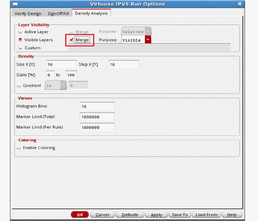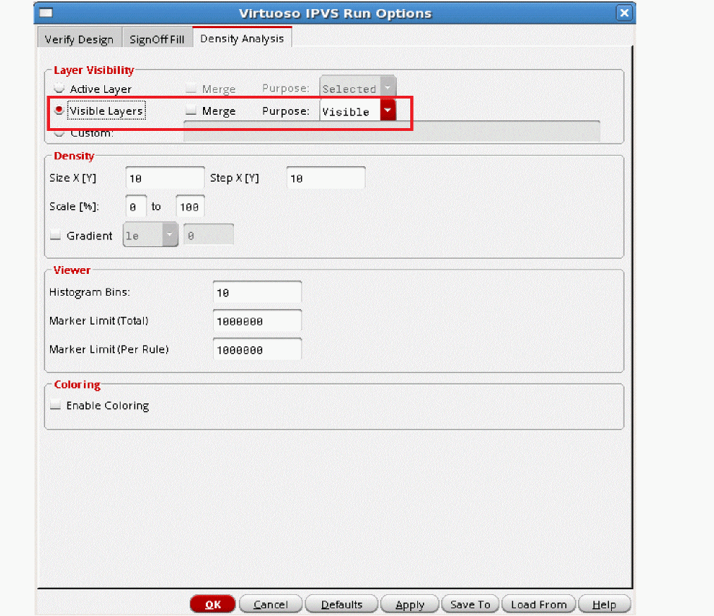 - Click VIPVS Run Options icon on the VIPVS toolbar. The Virtuoso Run Options form opens.