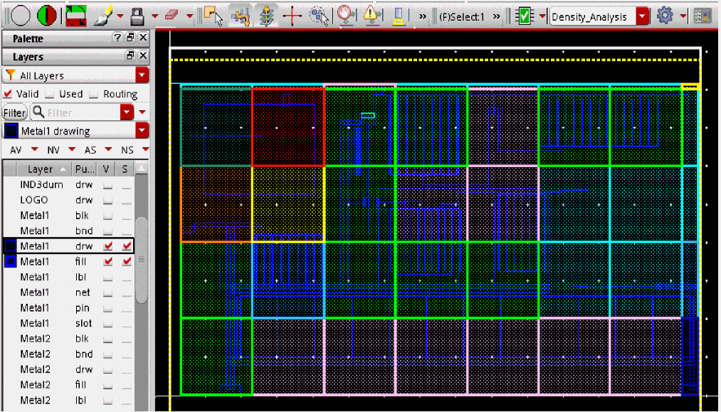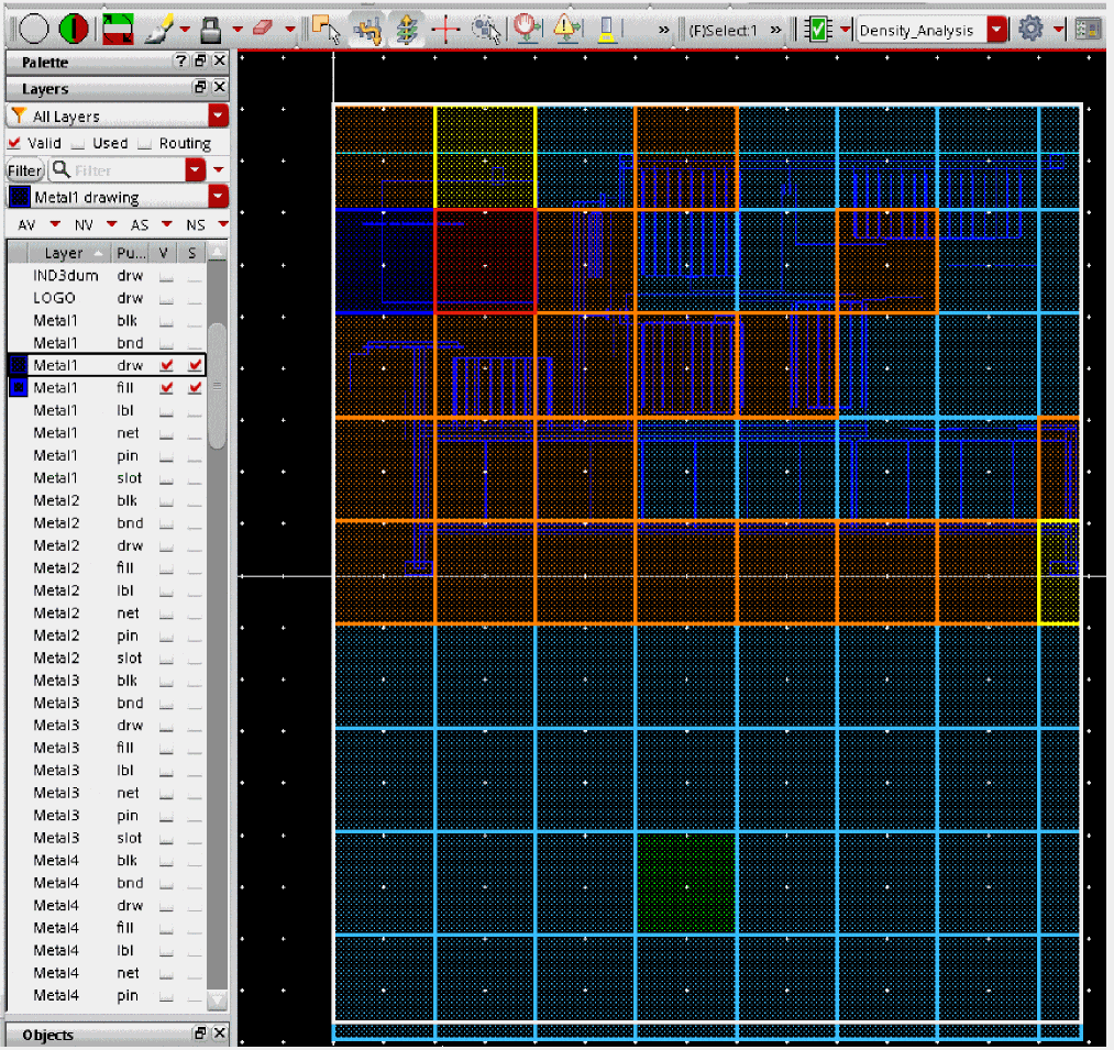 Click the Run VIPVS Verify Design icon. On completion of the run, the density heatmap is shown on the layout canvas: