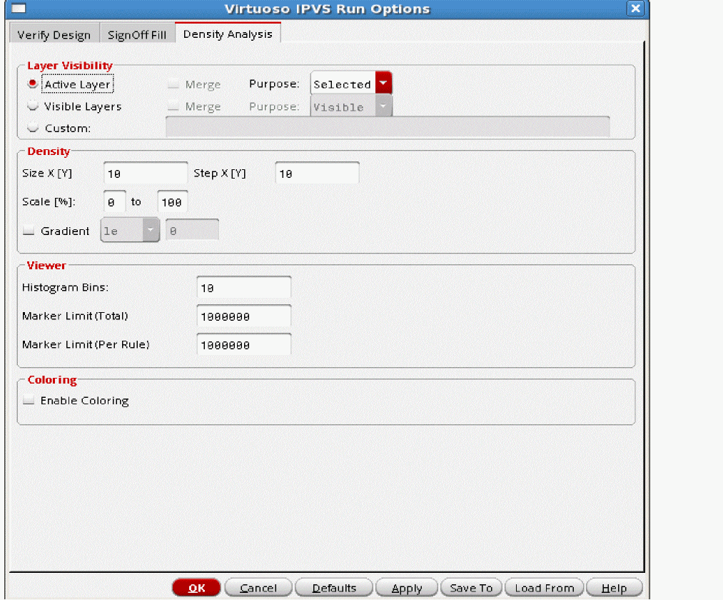 For detailed description of the fields of Density Analysis tab, see Run Settings for Density Analysis.