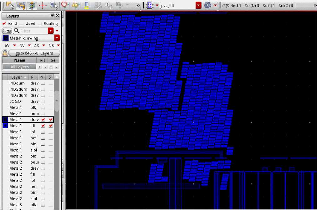 Run VIPVS SignOff Fill. Dummy fills are generated except for the area where blockage was created.