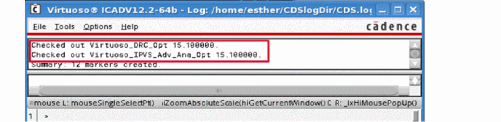 During the snapshot creation, license requirement(s) is documented as a part of the snapshot header information. At this stage, no license is checked out and Virtuoso IPVS only determinates license requirement based on the content of rule deck. However, the license validity check for Virtuoso_DRC_Opt is executed.