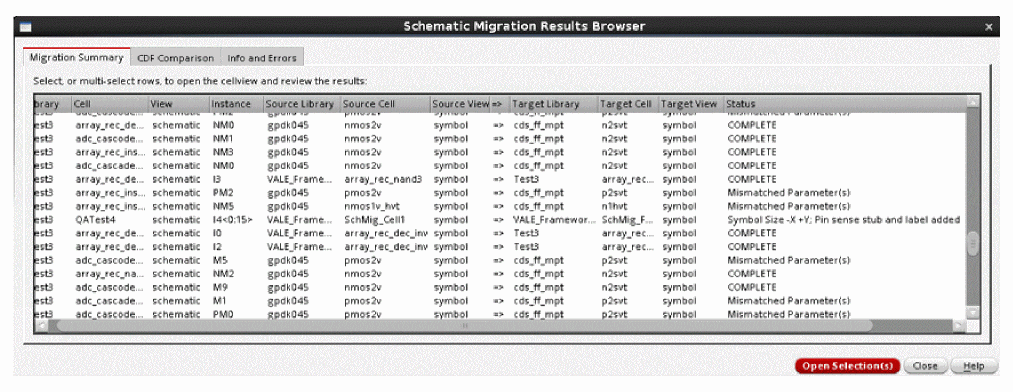 Figure 2-22 The Schematic Migration Results Browser Form