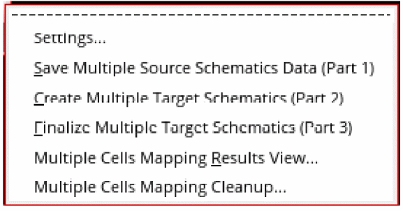 In the CIW, select Tools – Migrate – Multiple Schematics Mapping. The Multiple Schematics Mapping submenu includes the following items: