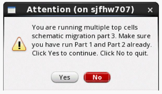 This is equivalent to interactive migration Part 1, instead it processes a list of top cells defined in a cell list file. It displays the Part 1 confirmation form.