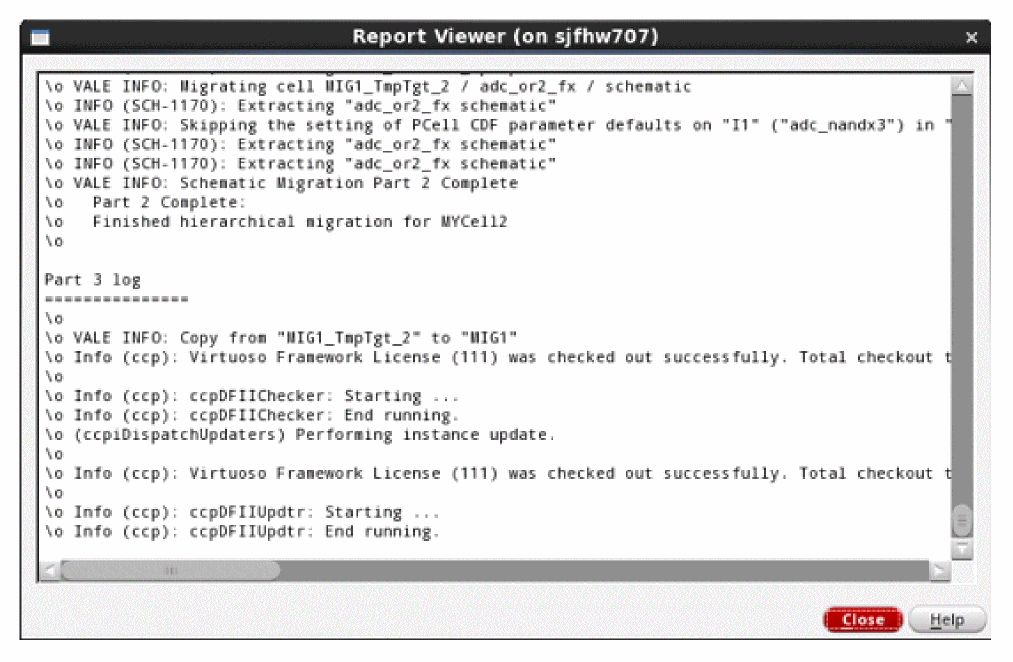 At the completion of Part 1, Schematic Migration will print the library mapping summary:
