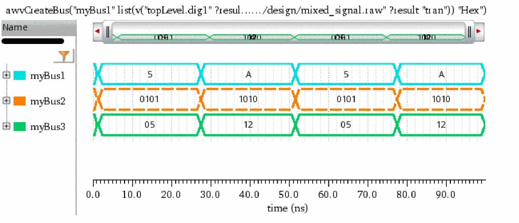 myBus1=awvCreateBus("myBus1" list(dig1 dig2 dig3 dig4) "Hex")