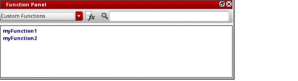 The following example indicates that the current executable application is Virtuoso Visualization and Analysis XL, and therefore, two custom functions myFunction1 and myFunction2 are added to the Custom Functions drop-down list in the Function Panel of Calculator.