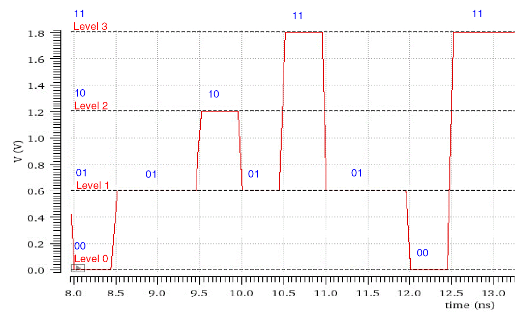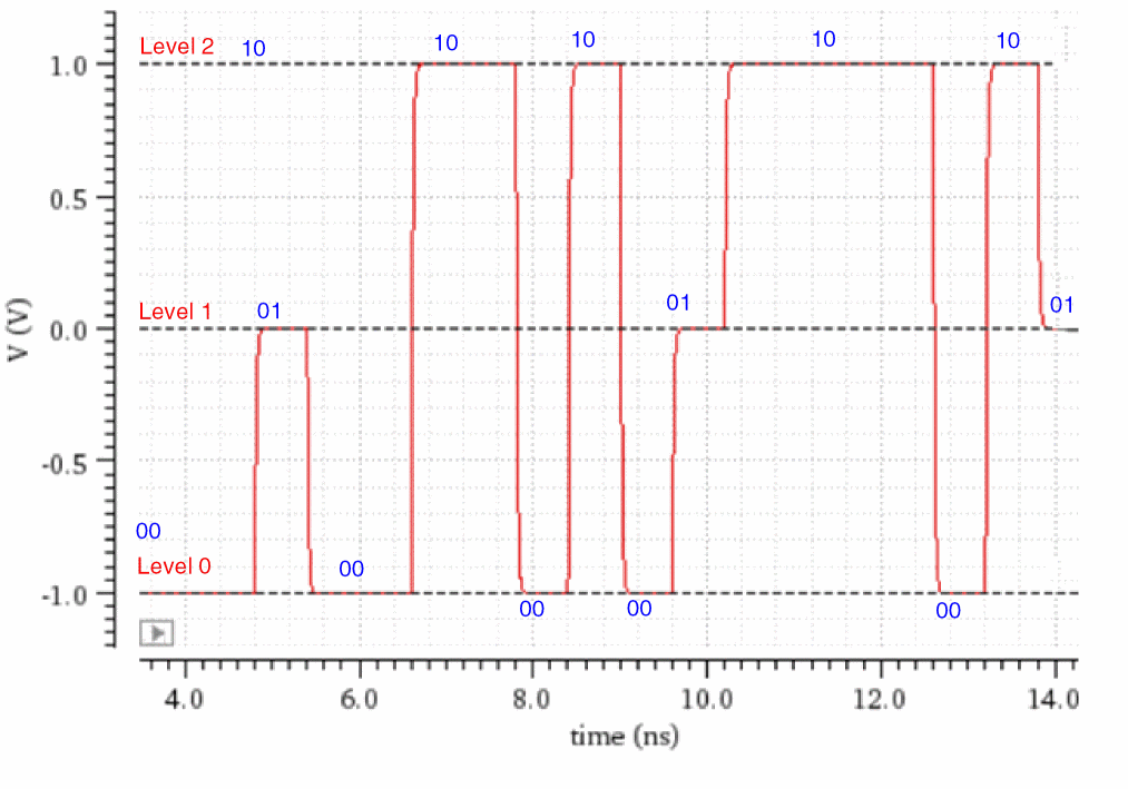 The following figure shows three different voltages levels that PAM3 uses to represent data.