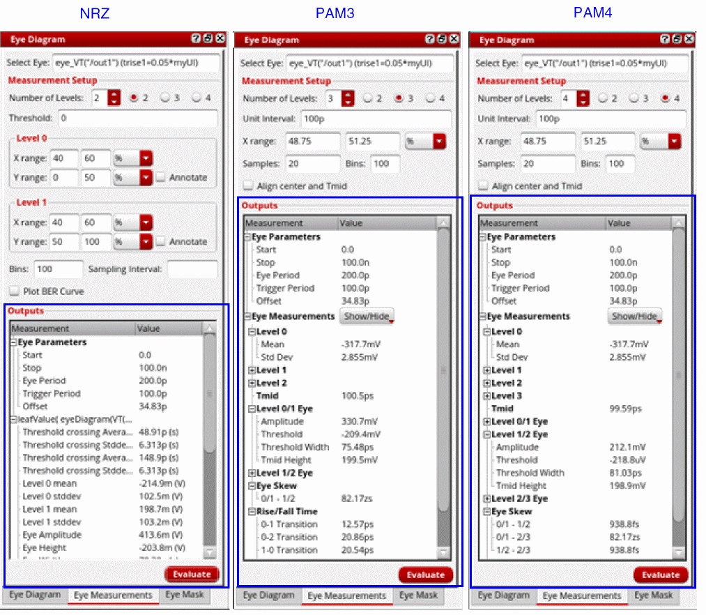 NRZ vs PAM3 vs PAM4 Eye Measurements