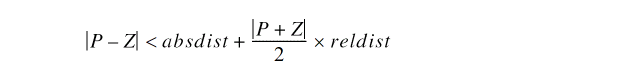 0, the absolute comparison is used. In this case, the doubles are considered equal if the other double is less thanmaxRelDiff*maxRelDiff(approx.4.93e-30).