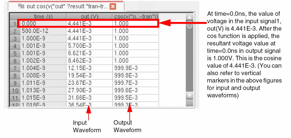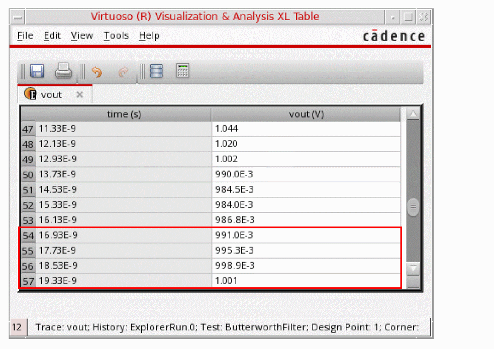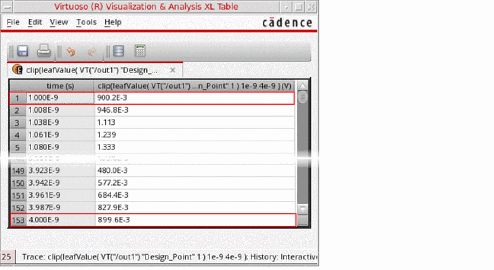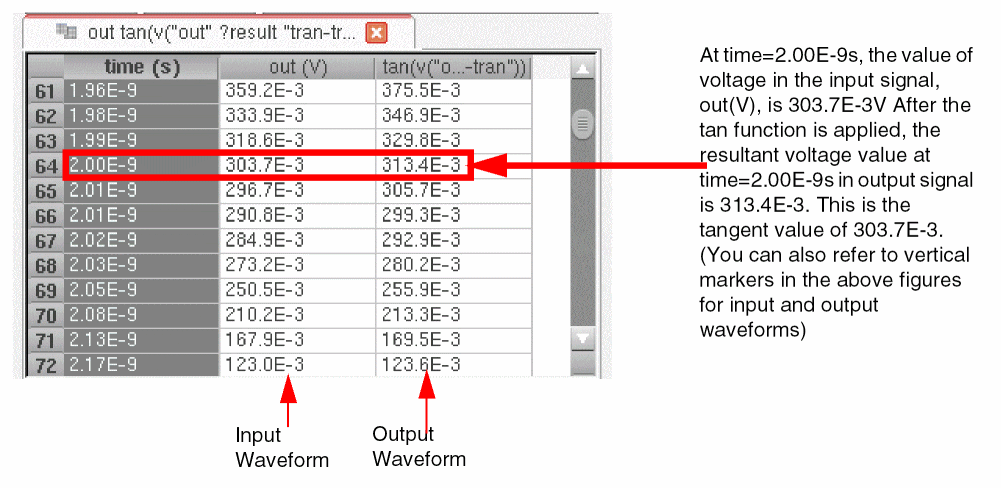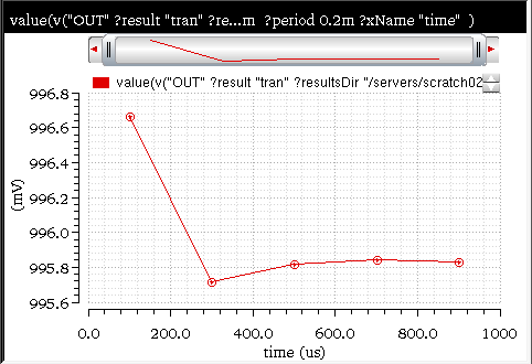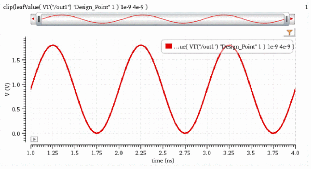 If you build the above expression with Time value=nil, the voltage on all the time points are returned (as shown in the figure below).