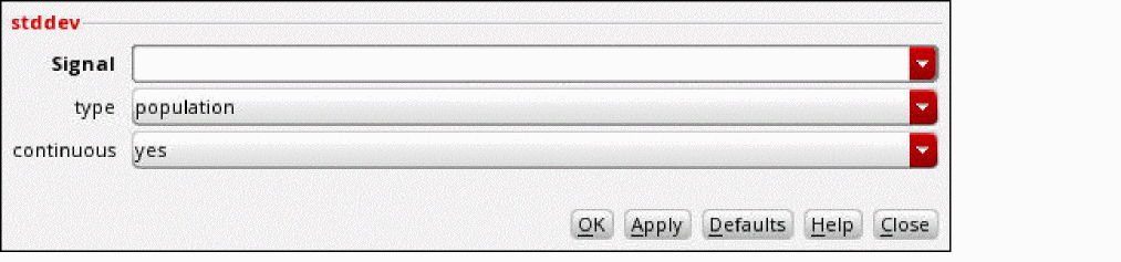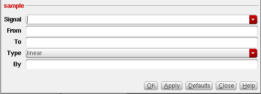 - If the function includes argument fields, a form appears in Function Panel where you can provide the argument values. By default, the default values are populated in the argument fields. If signal does not require arguments, it is directly applied to the signal expression in the Buffer.