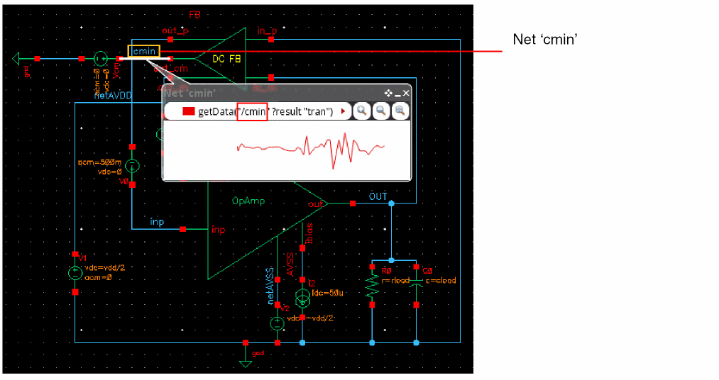 When you open Calculator from ADE, you can select the net name directly from the Schematic window. The selected net name appears in this field.