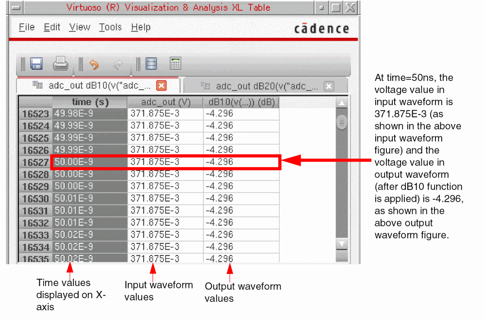 This section describes the following special functions available in the Virtuoso Visualization and Analysis XL Calculator: