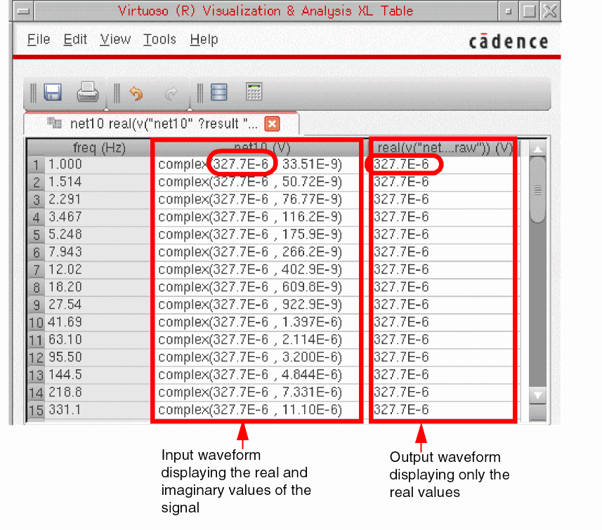 The following expression was created in the Buffer in the previous releases when you calculated voltage of net at a specified frequency or at all frequencies in the frequency domain: