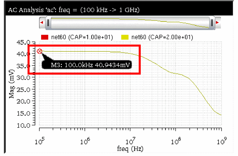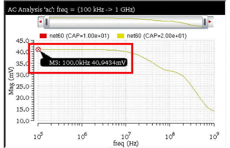 If you build the above expression with Frequency=nil, the voltage on all the frequency points are returned (as shown in the figure below).