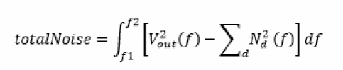 Spectre keeps a track of the contribution of individual noise sources to the output noise. You can also optionally subtract the specified device instance contributions from the totalNoise calculation by using the formula given below.