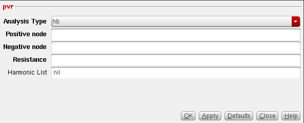 hb,pss,qpss,pac,hbacandqpac. Default field:hb - Positive node—Specify the positive node or net. This field can also contain an explicit voltage value.