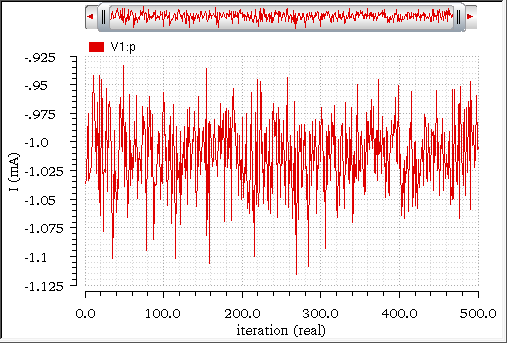 In this example, the noise contributed by resistor schematic instances /R0 and /R1 is excluded from the totalNoise calculation.