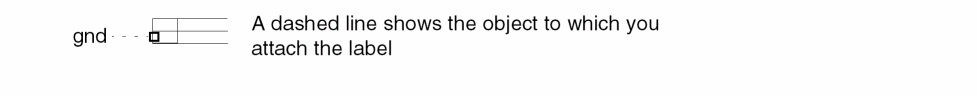 With the Attach option enabled, a label is attached to the object you click. If there is no object at the click point, you are prompted to click an object to attach the label to the object. When attaching a label to an object, a dashed line extends from the label to the object and disappears when you click the object.