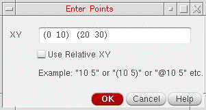 For information about using the Enter Points form and the status toolbar to specify points for the create and edit commands, watch the video Enter Points for Create and Edit Commands. Access to the video depends on the availability of a web browser and a Cadence Online Support account.