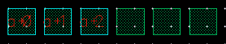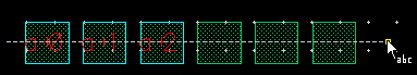 By using the scan line, you can label multiple objects in one go. This method is useful if the specified pattern in the Label (Pattern) field generates multiple labels in a sequence. For example, the label GDD will label only the first object even though the scan line may intersect more objects. The scan line assigns labels to only as many objects as the number of labels generated by the specified pattern. Consider the pattern A<0:2> with the Expand option selected. Three labels are generated: A<0>, A<1>, and A<2>. If the scan line intersects five objects, only three of them are labeled.
