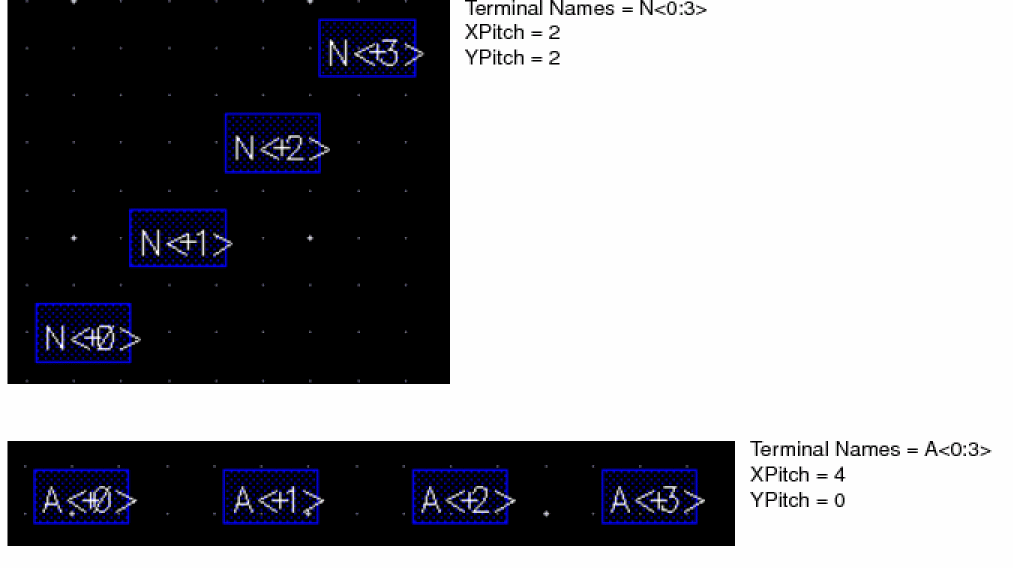 For example,NetA<0:5> - Type the horizontal and vertical pitch for the array in the X Pitch and Y Pitch fields.